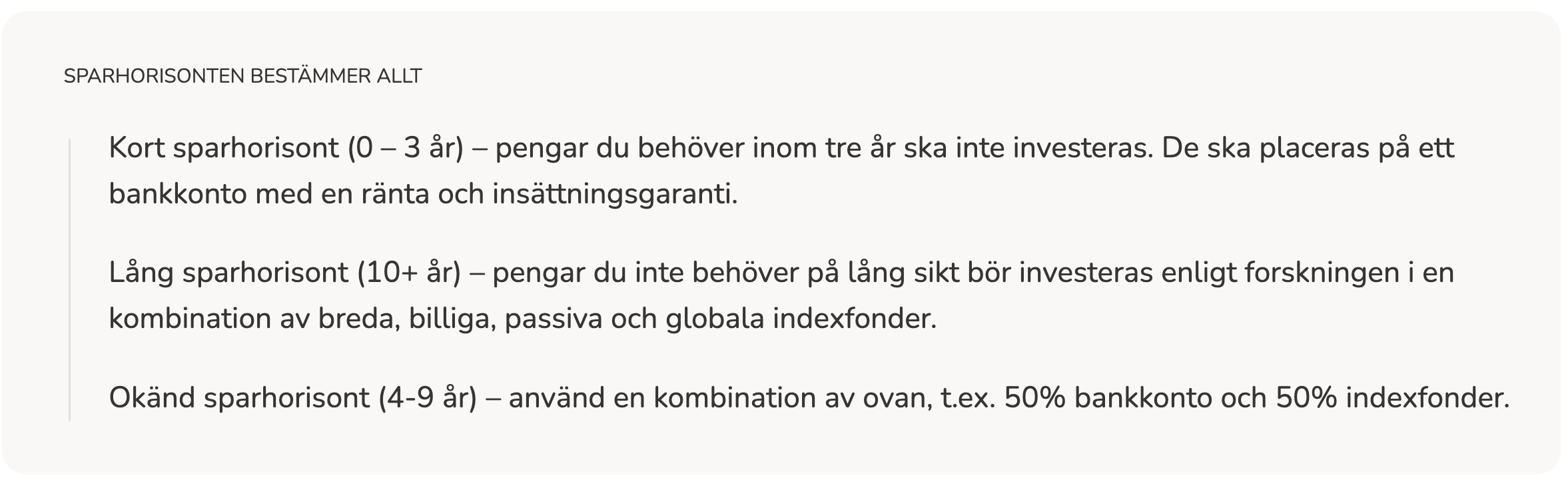 I vanliga fall håller jag med dig men jag upplevde en osäkerhet från TS när pengarna behövs. Kan då vara lite trist att precis ha bundit om hela summan när tillfället väl infinner sig.