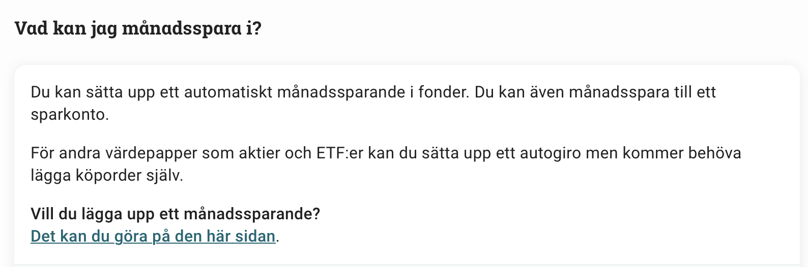 Nästa måndag smyger jag iväg medan chefen inte tittar, hittar avgiften och spreaden, på nåt sätt lär jag mig att det finns en valutaväxlingskostnad, och så ska jag sätta upp ett månadssparande så allt sköter sig själv.