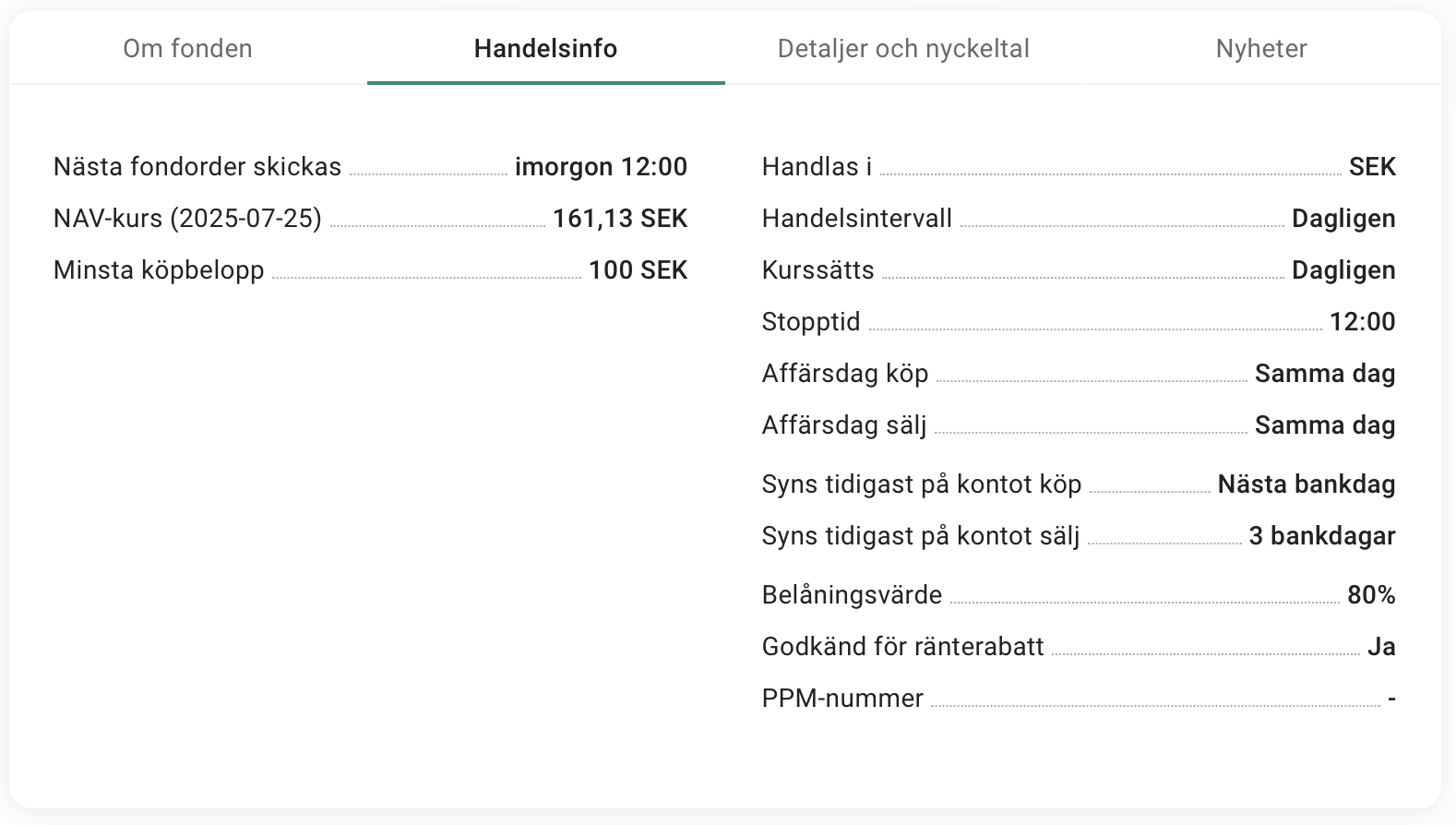 Haft denna fonden ett bra tag men såg till min fasa när jag häromveckan behövde lösgöra kapital till annat lite hastigt att det tar 3 bankdagar att synas på kontot sälj på Avanza.