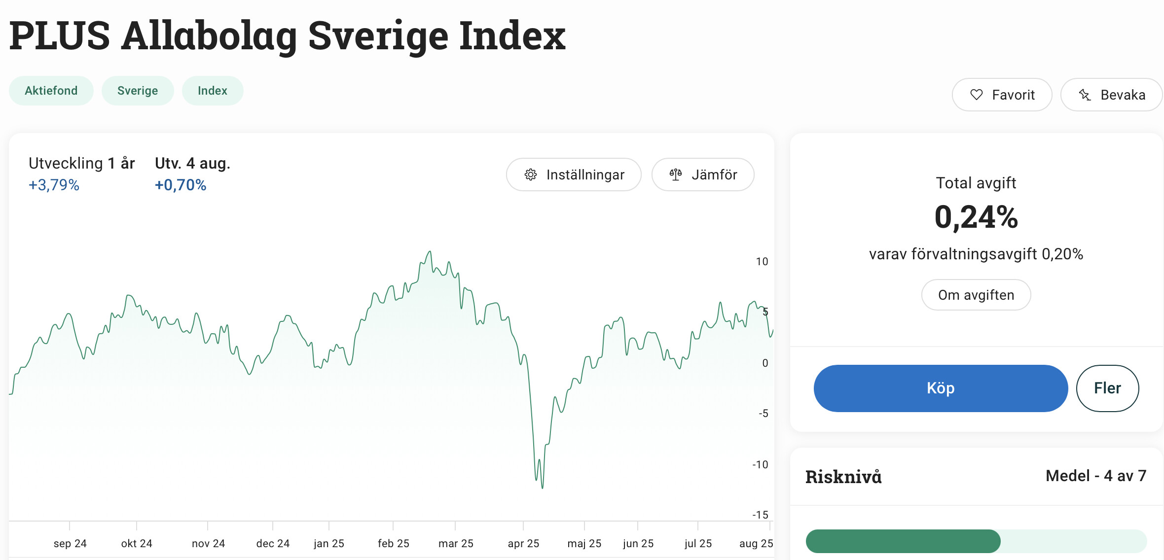 Lite väl dyrt tycker jag, om jag får klaga. Inte i absoluta tal givetvis, men i förhållande till vad man får. Varför finns det ingen prispress på (breda) svenska fonder? Ingen som vill prispressa under 0,20. Detta är ju dyrare än en globalfond. Är det inte billigare att bara handla inom det egna landet?