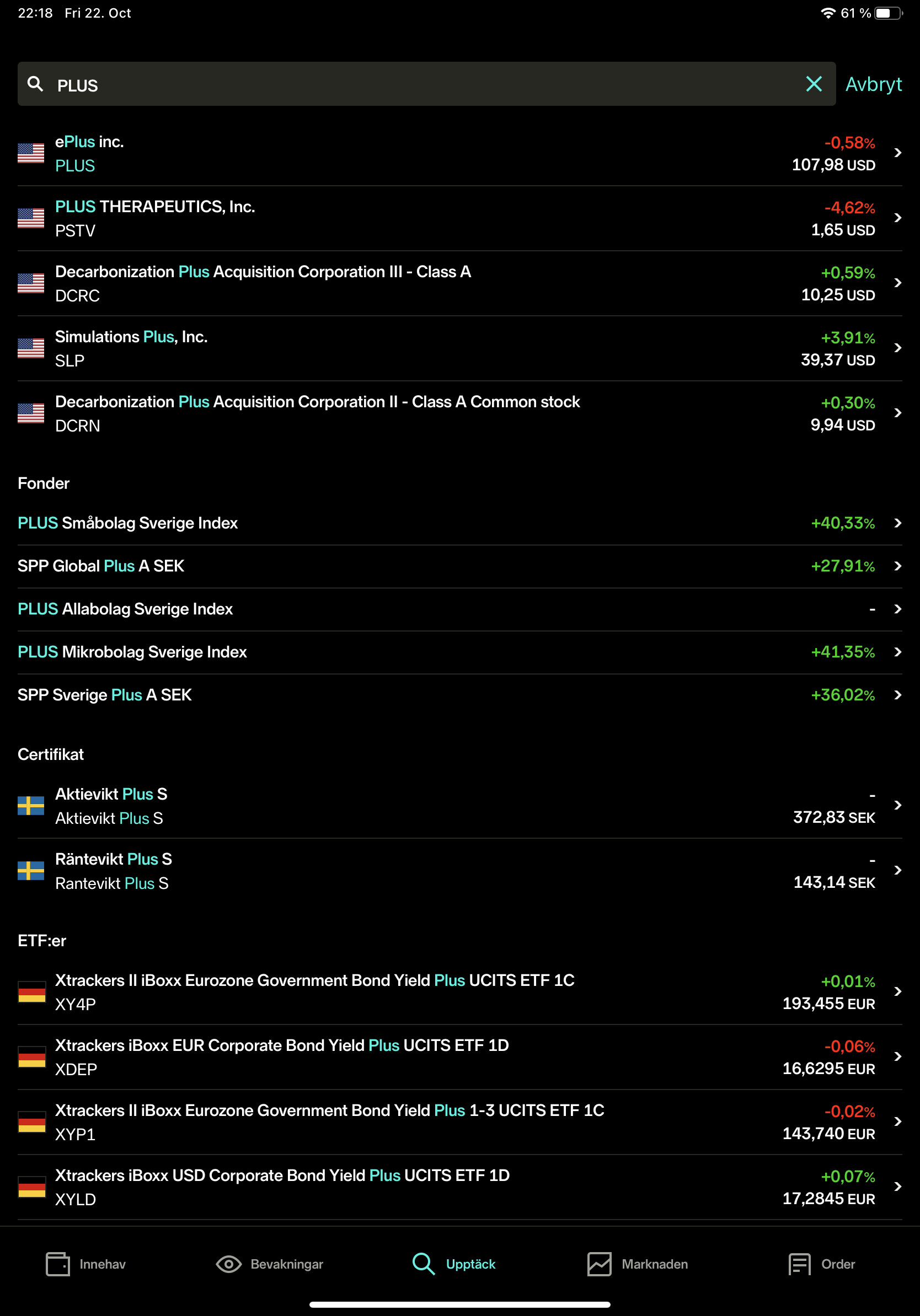 Nja. Borde dyka upp i avdelningen Fonder. De “gamla” PLUS fonderna hittas ju. Men nu hittas den iaf när jag söker “Plus fast”. Gjorde den inte förut. Kanske behövdes cachas. Nordnet appen är inte den bästa i världen