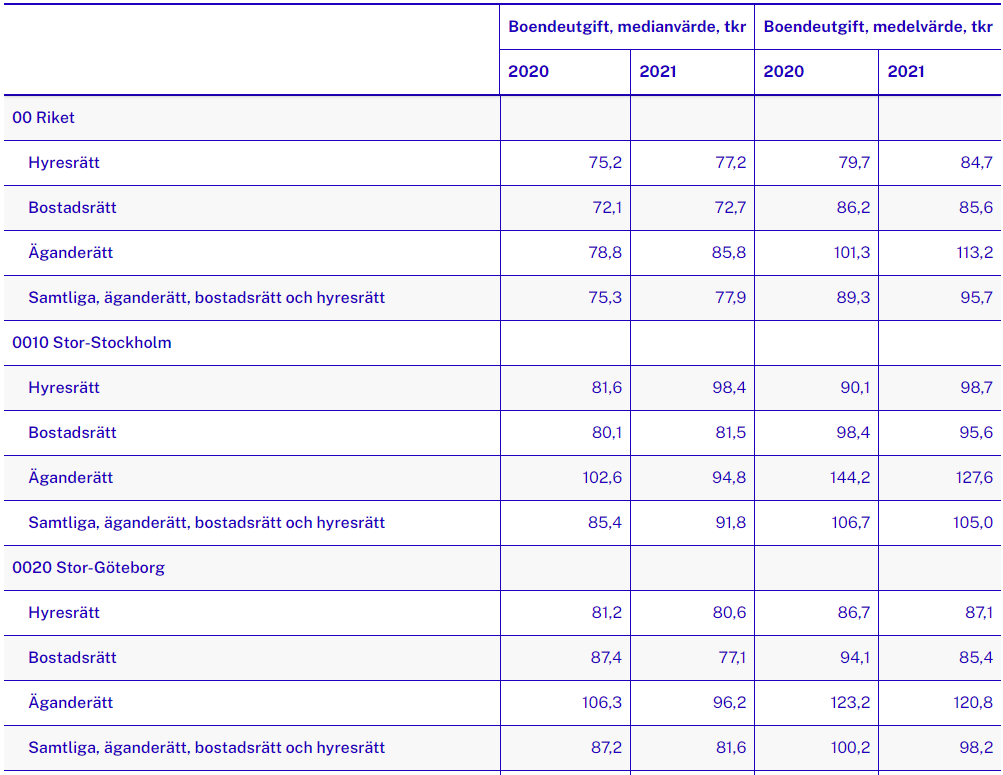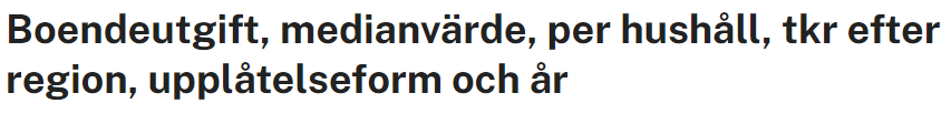 Undersökning kan även göras i kostnaden för hyra/drftkostnad/boendekostnad… Dvs. antal kronor per månad…