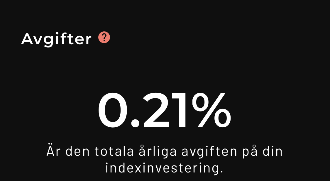 0,21% är avgiften för de underliggande ETF:erna jag har i min portfölj. Väljer du en enda ETF som kostar 0,05% betalar du det i löpande avgift.