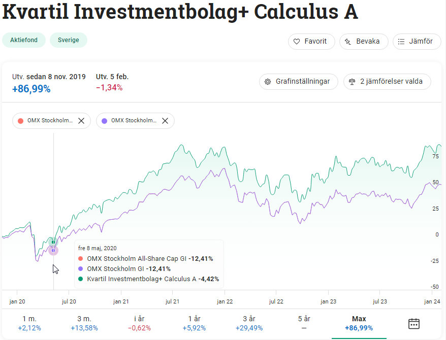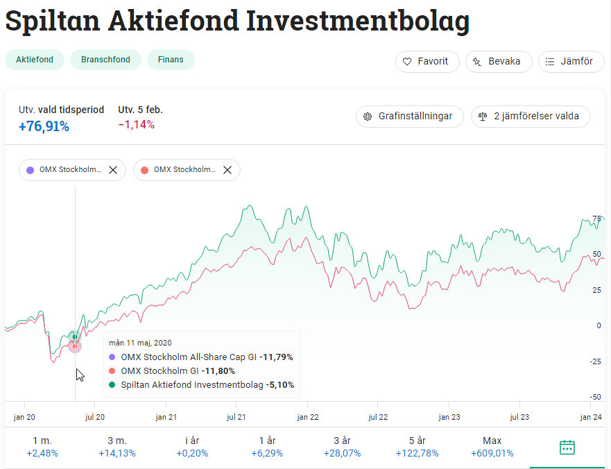 Hmm, ok så vilket jämförelseindex har den här fonden egentligen? Spiltan Aktiefond Investmentbolag har OMXSCAPGI.