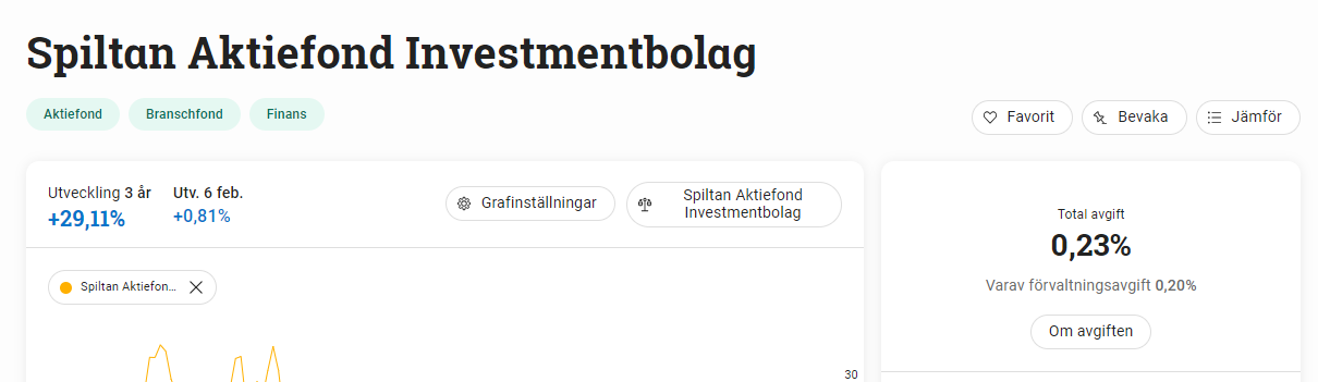 Den stora dragningkraften hos Spiltan Aktiefond Investmentbolag är att för den som vill investera i just Sverige (av vilken anledning det än vara må), är avgiften låg. Bara 0.20%
