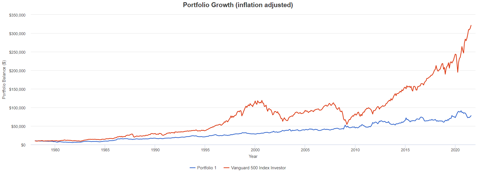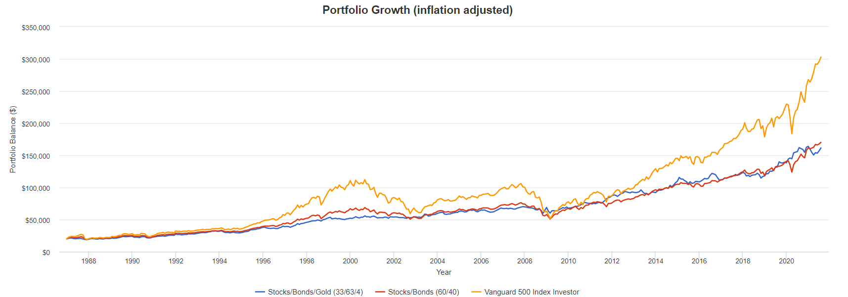 Diskussionen tog en vändning då @axr, @ludde35711, @Skrivkramp, @Anonym och jag själv började diskutera huruvida guld verkligen är bättre än räntor ur risk/avkastning-synpunkt. @axr hävdade att den effektiva marknadsportföljen som följer en optimering av Sharpe-kvoten har en fördelning mestadels bestående av räntor och aktier, och att guldet endast har en marginell effekt. Jag själv hävdade att guld var bättre än räntor då det gav en lägre risk med bibehållen avkastning om risk defineras som maximal förlust–engelskans maximum drawdown (MAD)–istället för standardavvikelse som vid Sharpe-kvotoptimeringen.
