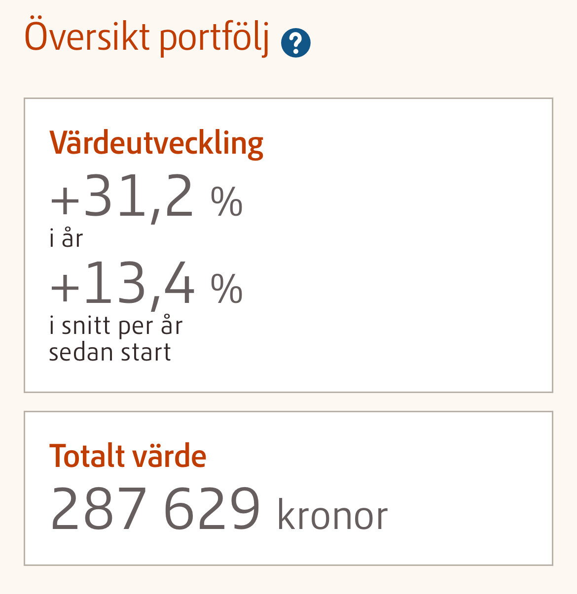 Så länge den slår mina egna portföljer är jag väldigt nöjd vilket hittils varit fallet.