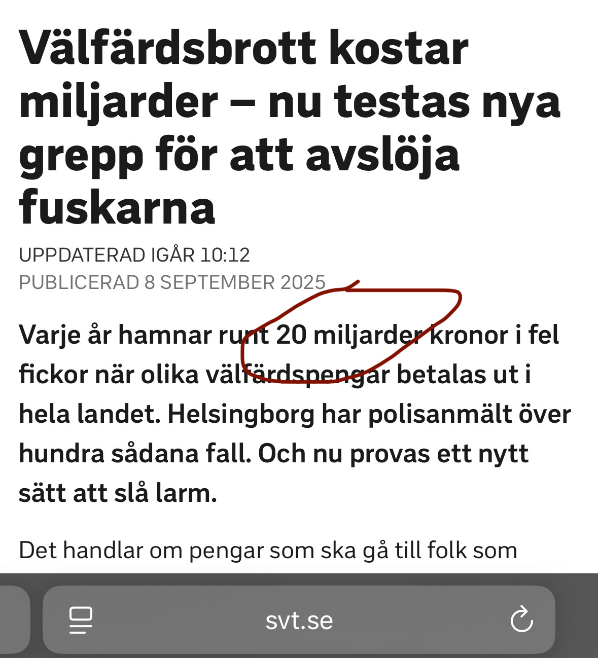 Älskar den svenska välfärden men älskar inte de tre kostnader som jag skriver ovanför. 20+60+55 → 135 miljader kr per pr. Häften räcker för att finansera den statliga skatten