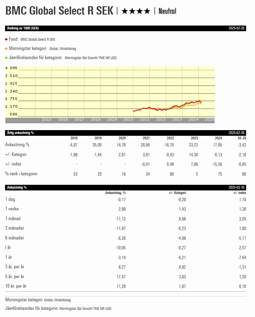 Ja, det är ju inte så svårt att se i efterhand. Det kan vem som helst hitta perioder när andra fonder har gått bättre. Men vi investerar ju inte bakåt i tiden, endast framåt.