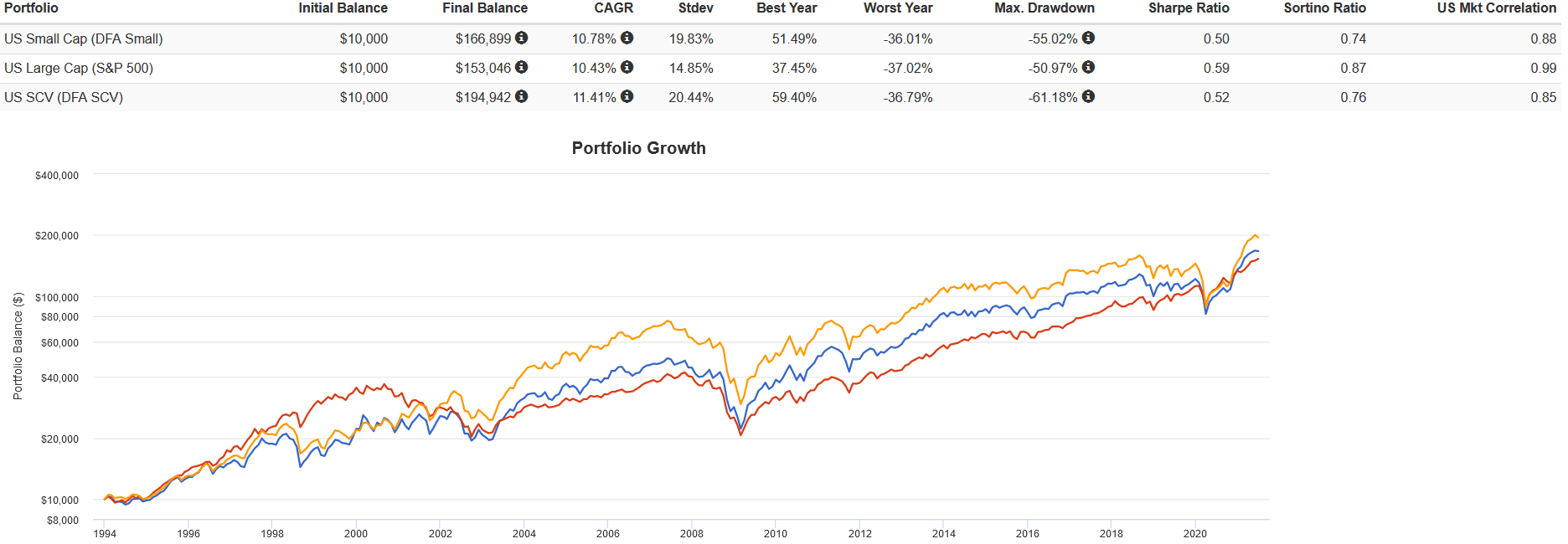 0,35% extra CAGR med småbolag över en 29 års period. Med små värdebolag, cirka 1% extra, med betydligt högre “risk”. Sen är frågan om “premien” framöver kommer vara signifikant eller om det slaktas av allt flöde som kommer dit efter överprestationen, som så skedde exempelvis under 00-talet.