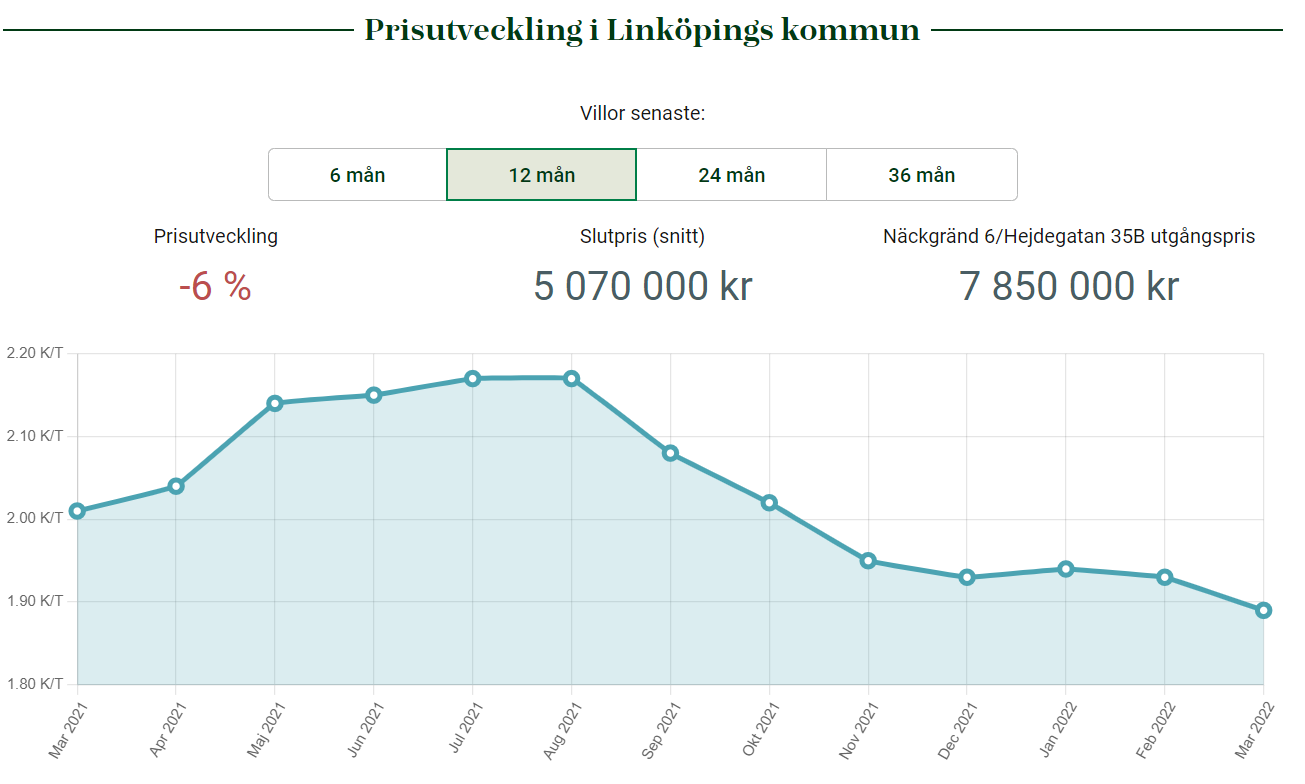 Jag läser ofta om hur mycket svenska fastigheter har gått upp i pris den senaste tiden men om jag går in på Hemnet och tittar på prisutvecklingen för villor i några normala svenska städer så är det tvärsom, priserna verkar istället ha gått ner enligt graferna nedan. Vad är det jag missar?