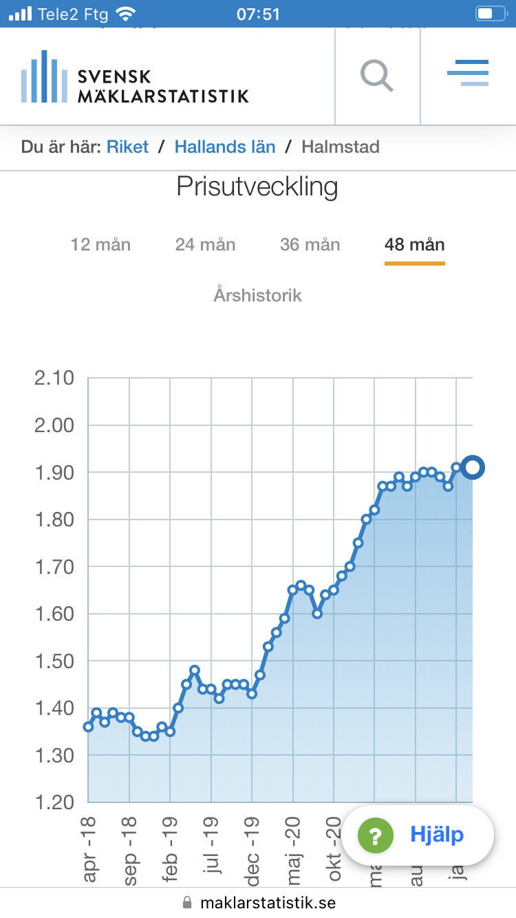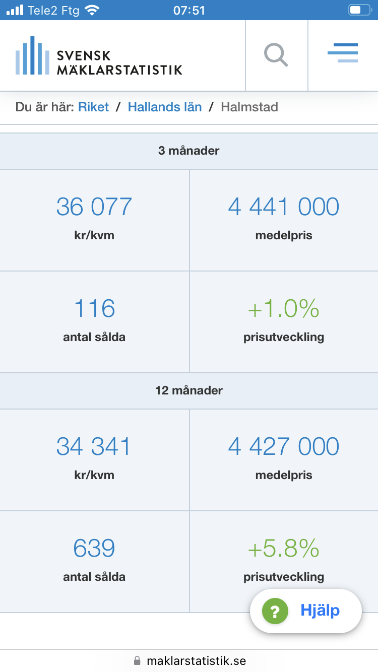 Jag testade att jämföra statistiken med svensk mäklarstatistik som bygger på de försäljningar som mäklare dagligen rapporterar in. I dagsläget får de in data från över 95% av Sveriges mäklare. Om man jämför den data med Halmstads utveckling kan man se att Halmstad har haft en positiv utveckling på villor på 5,8% de senaste 12 månaderna. Undra ifall det är Hemmet eller denna statistik som är mest tillförlitlig