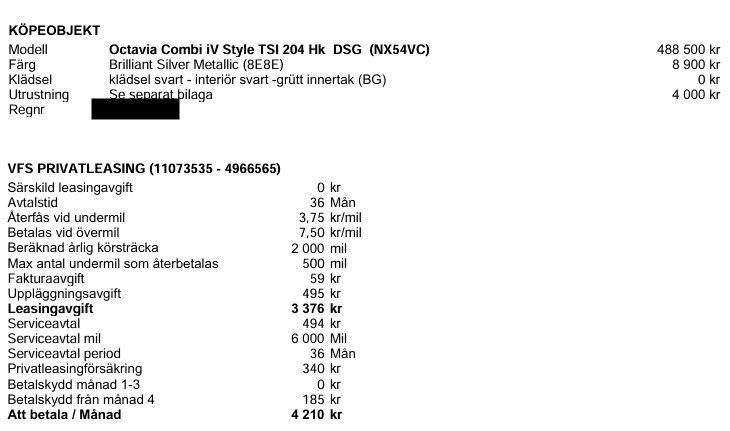 Har du lagt till något i offerten mer än 2000 mil/år och försäkring?