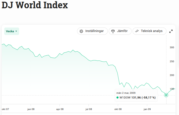. Sedan får vi räkna med att även bredaste global indexfond kan backa ordentligt då är det viktigt stå ut med det om man vill bli långsiktigt vinnare på börsen.