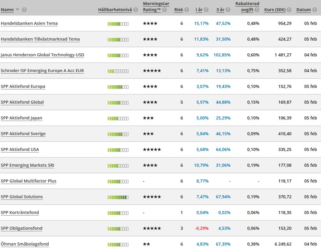 Jag har flyttat 50% till SPP och spridit det på SPP Global, USA, Sverige, Japan och Handelsbanken tillväxtmarknad tema.
