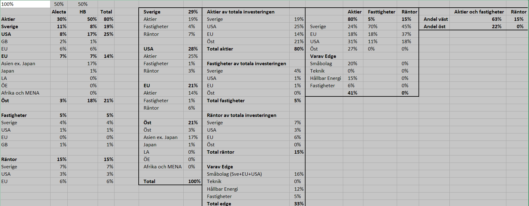 När jag googlar så får jag fram att detta innebär 60% aktier 10% fastigheter och 30% räntor.