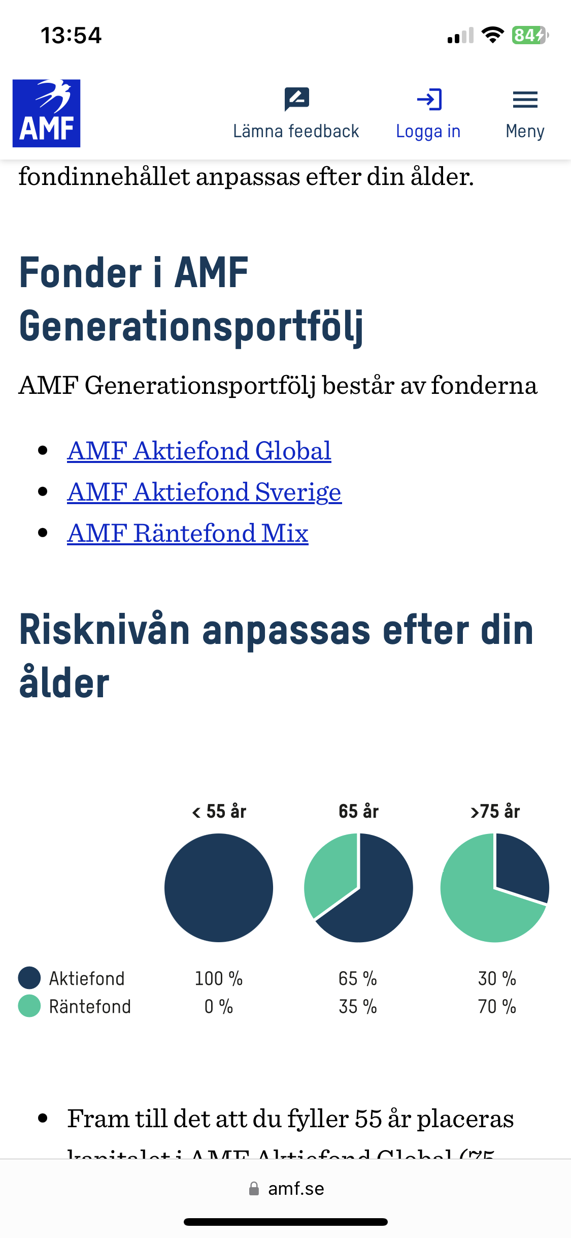 Sverige är en så liten del av världen och jag känner att jag inte vill ha “bias”-tilten åt det hållet i min tjp. Hur ser du på räntefond mix hos AMF?