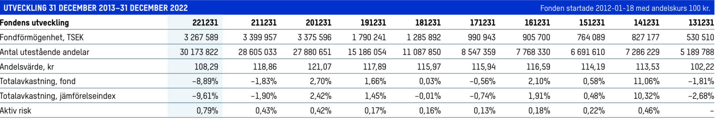 Det är egentligen det som stör mig mest. Skulle inte haft ett problem med en räntefond som följer ett index med flera decennium historik. Jag förstår inte varför vi inte kan ha passiva fonder som i andra länder.