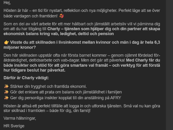 Jag har betydligt högre lön än min sambo, men vi kommer inte från rikedom och vi behöver ju pengar nu för att leva också. När min sambo blev gravid så började vi spara 1000kr extra i hennes namn. Den skillnaden kommer kvarstå tills vi går i pension (eller så länge vi förblir tillsammans..). Det kommer innebära att i drygt 30 år kommer min sambo få 1000kr extra insatt på hennes lysakonto varje månad (vi kanske ökar den framgent men inte de närmaste åren iaf). Det kommer absolut inte täcka skillnaden i vår pension, jag hade haft högre pension oavsett.., men gissningsvis så kommer det kanske hjälpa för de månader hon var föräldraledig.