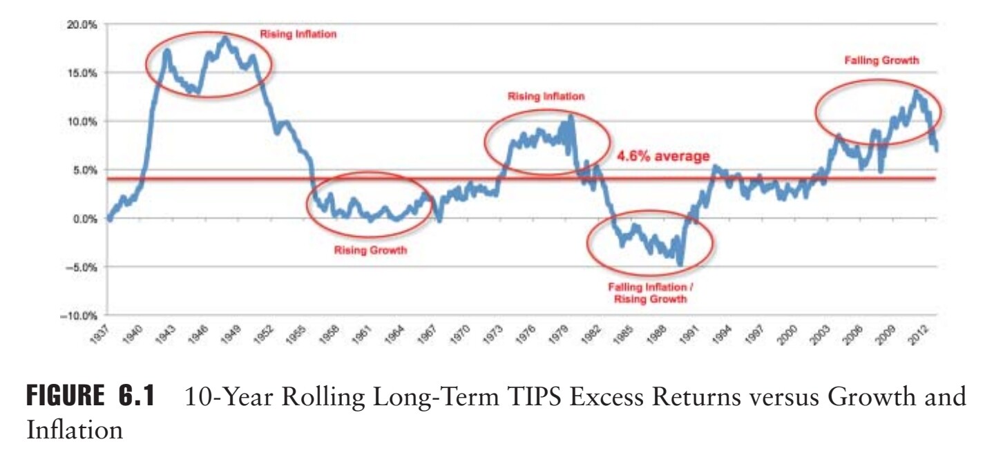 Marknadspriset på realränteobligationer styrs alltså av marknadens inflationsförväntning. I varje givet läge är det 50% chans att en effektiv marknad antingen över- eller underskattar framtida inflation. Jag anser därmed att det mest marknadsneutrala är att ha lika hög andel nominella resp. reala obligationer, om möjligt.