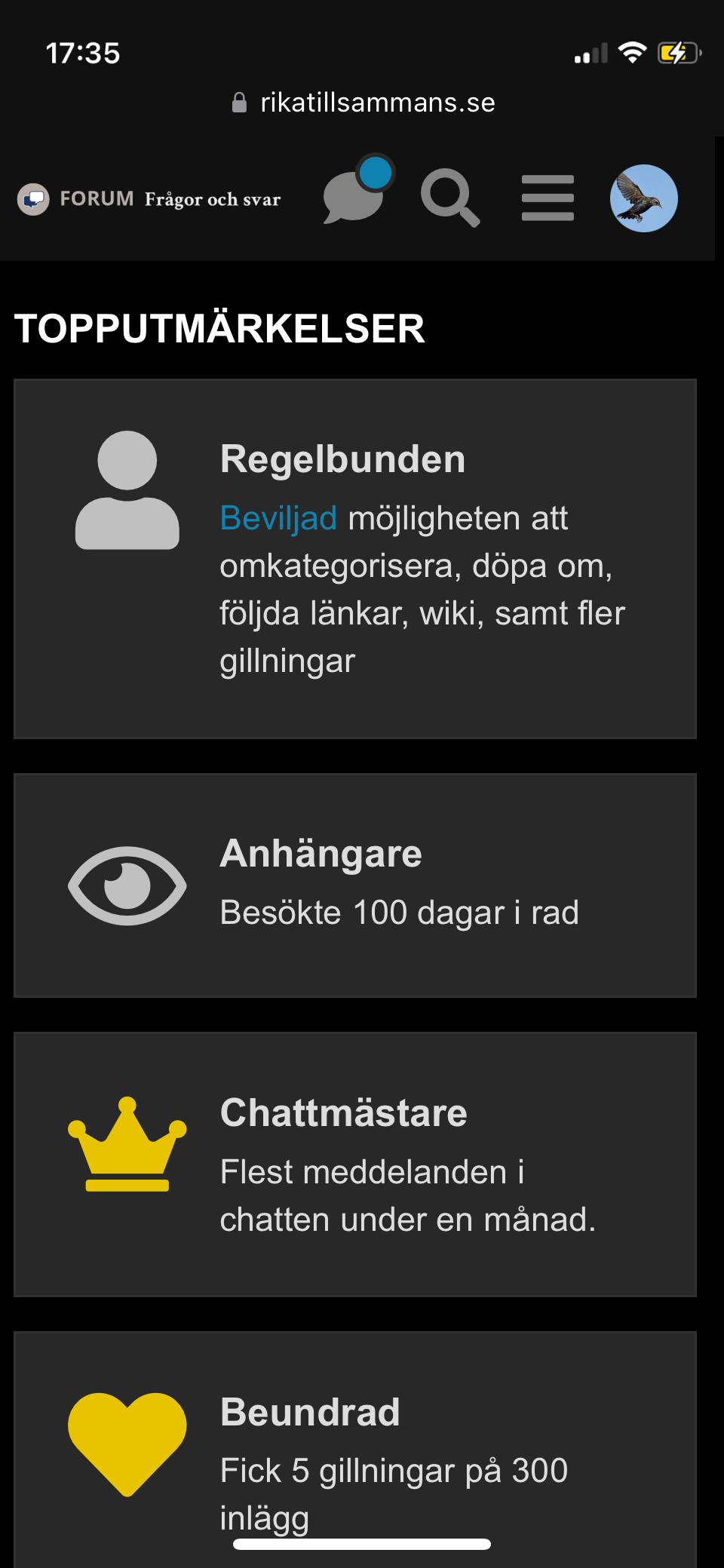 Man hittar sin egen nivå under utmärkelser som det verkar, längst ner på sin profilsida.