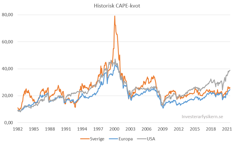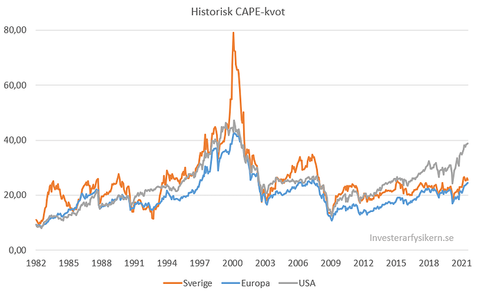 Edit: här är lite nyare CAPE (Shiller PE) data.