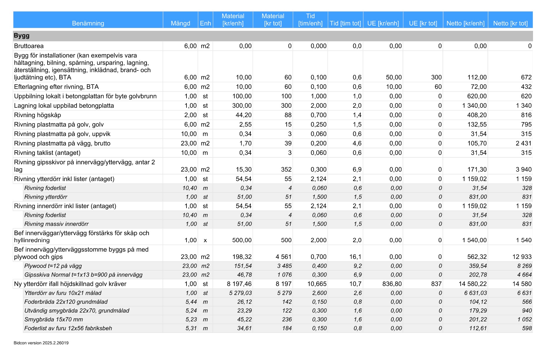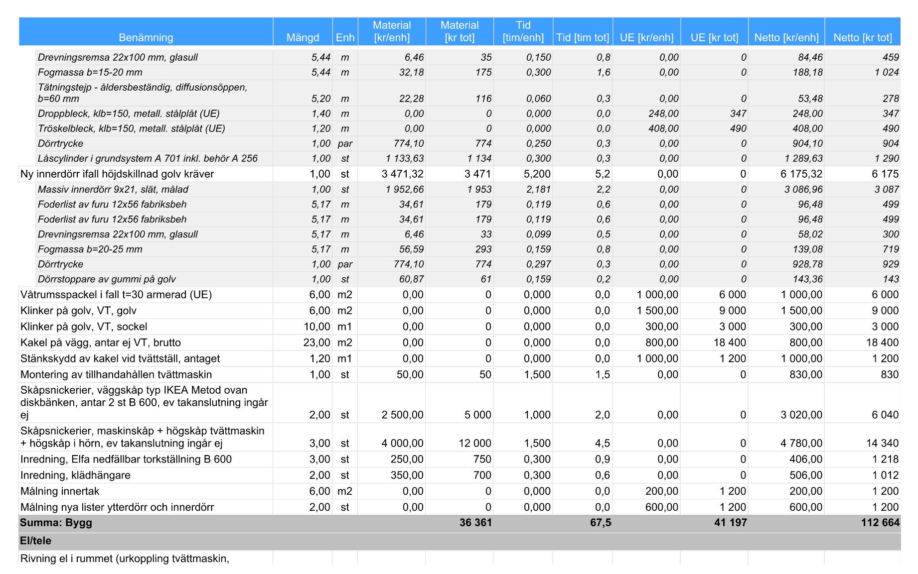 Känns spontant som att min kalkyl vart tokdyr, kanske mycket jag antagit som ej ska ingå? Jag har även dubbla montagetiden jämfört vad mitt kalkylprogram sagt. Kalkylprogrammet har ej helt korrekta materialrabatter heller, så materialet borde kunna sjunka 20-30% på ex vis gips och plywood.