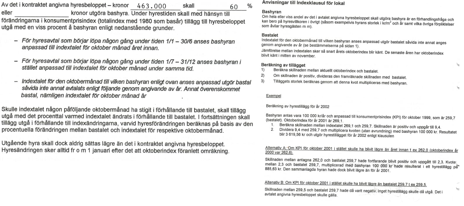 Min fråga är hur tydlig denna klausul egentligen är, om den t.ex. inte innefattar hur & när höjning skall träda i kraft. Blir genast lite klurigt om den bara täcker delen för hur man beräknar en indexhöjning.
