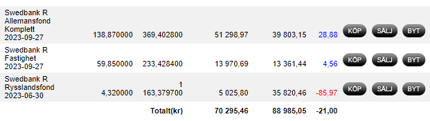 Med dom andra fonderna jag har ligger jag ju varje fall plus.