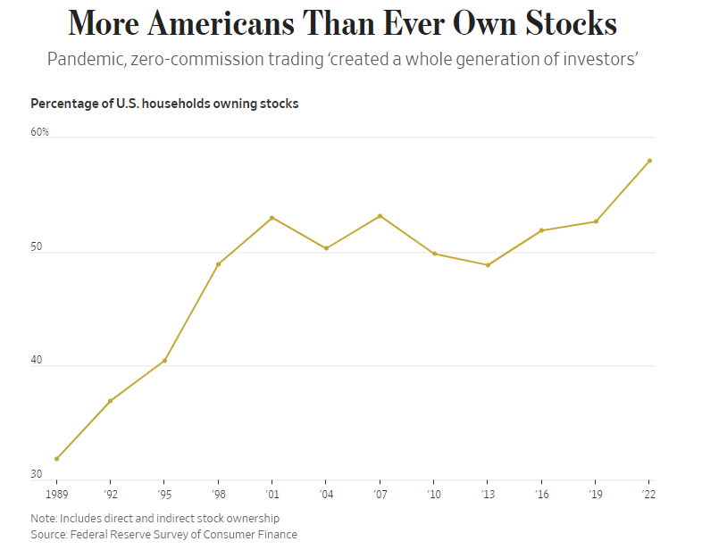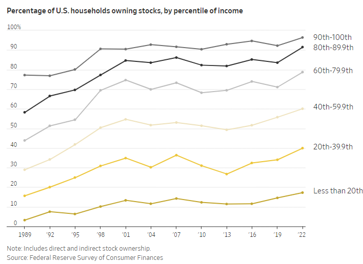 Intressant perspektiv. När vi svenskar äger fonder (ca 50% utanför pensionssystemet) och bara ca 20% äger enskilda aktier, ligger amerikanerna på 60%. ![]()
