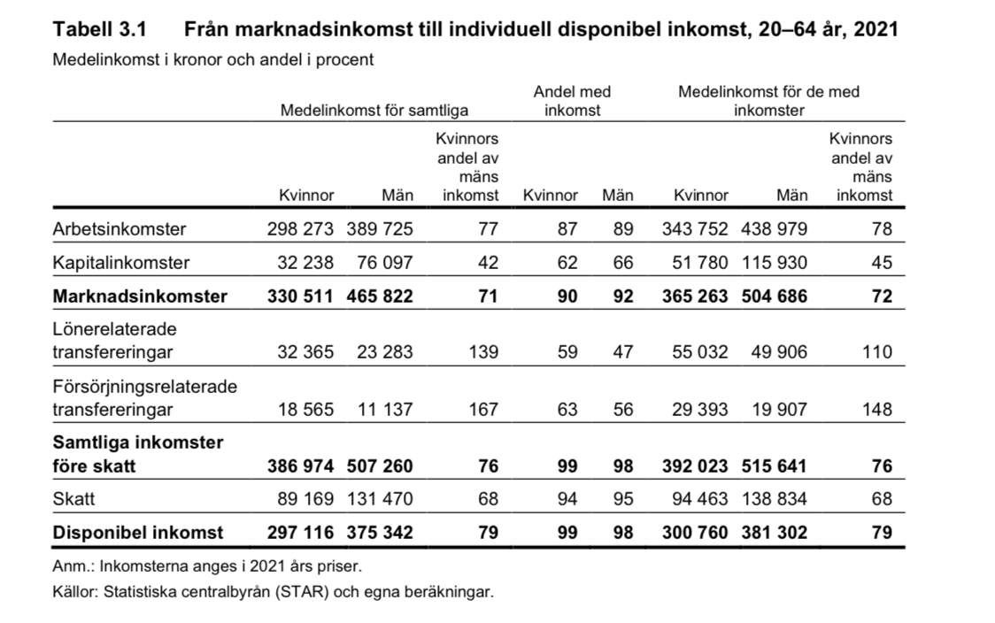 Tittar man i tabell 1 så har då män 20-64 (snitt 42 år) 76097 kr i kapitalinkomst.
