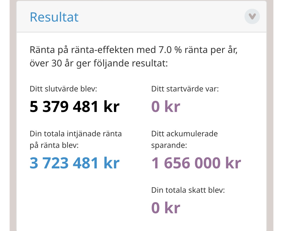 Jag tror inte på 7% i snitt. Inte det man kan vänta sig enligt statistik över lång tid. Snarare är 4-5 % årligen rimligare att kalkylera med efter att inflation, ISK skatt och låga förvaltningsavgifter är avdragna.