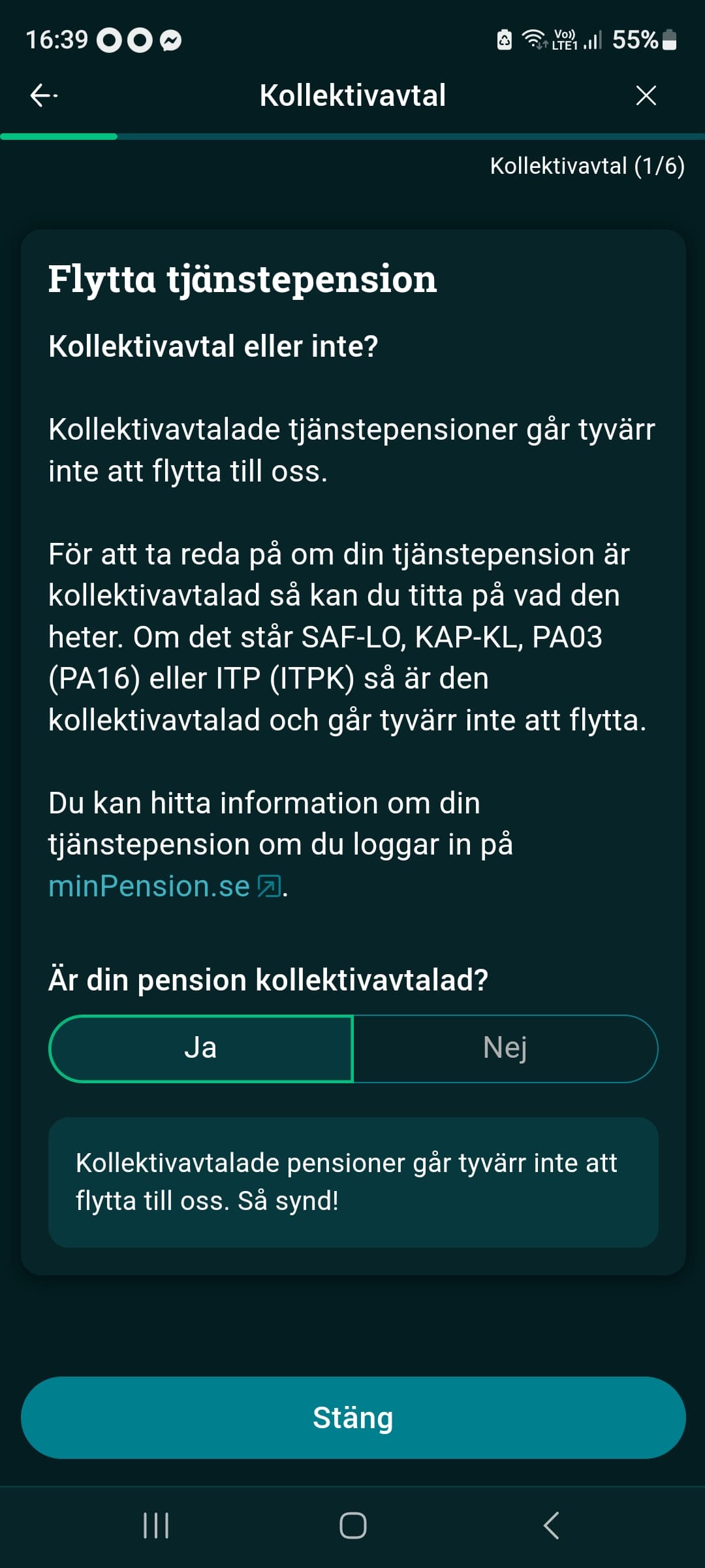 Kollektivavtalade tjänstepensioner kan inte flyttas tillAvanza men de kan flyttas till andra förvaltare.