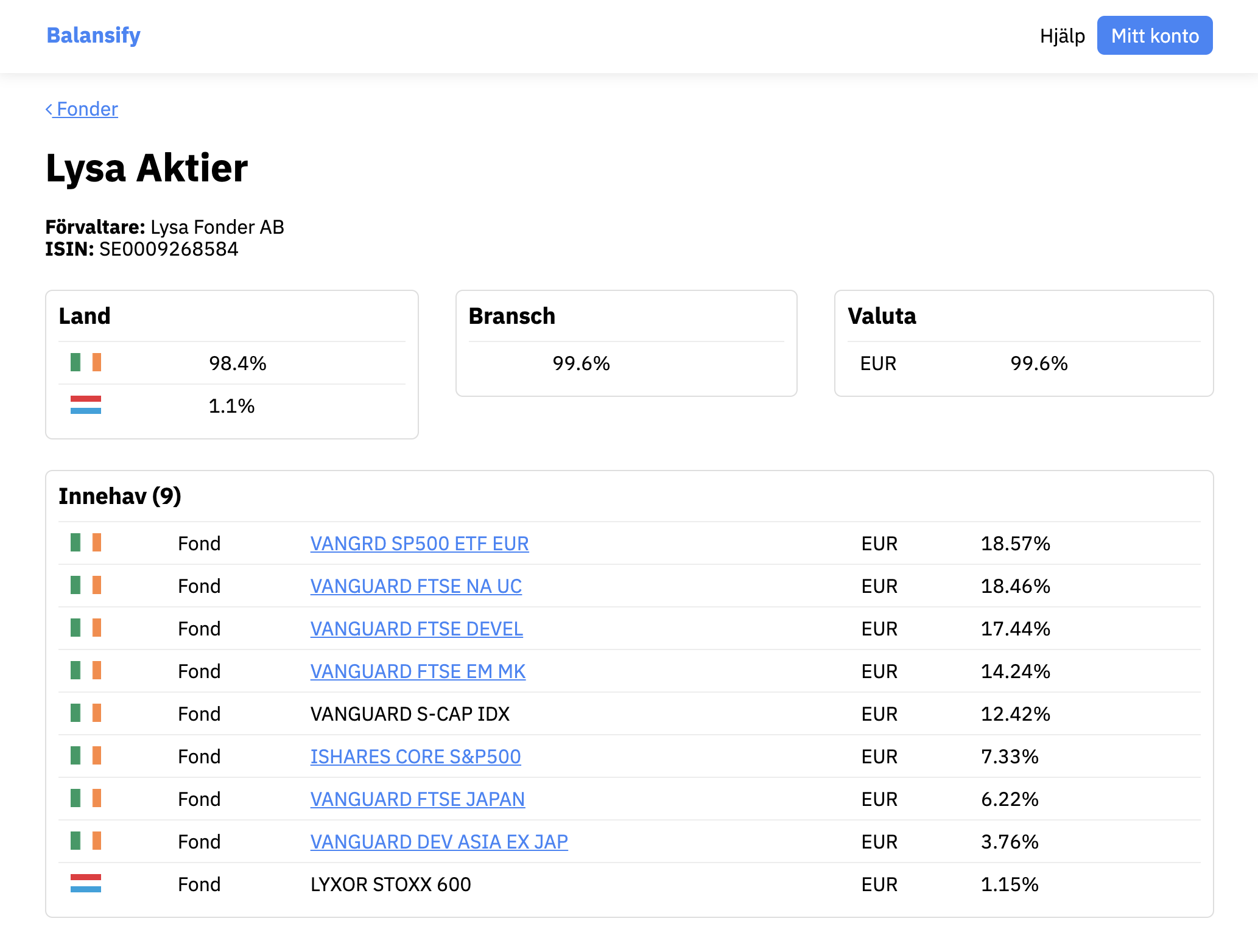 Övriga fonder (Amundi, Blackrock, iShares, Vanguard) letar jag upp direkt från deras hemsidor.