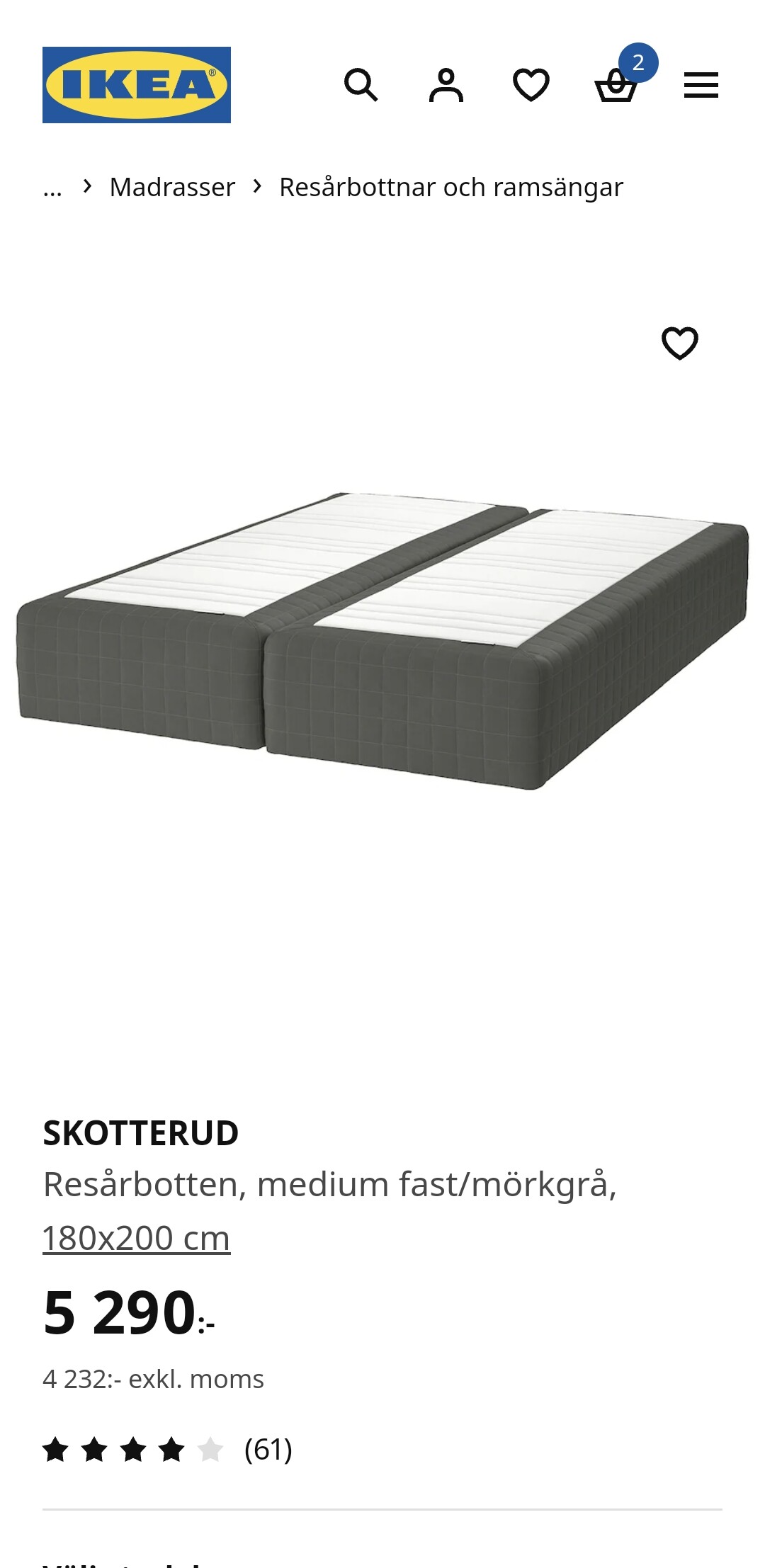 Det var billigt. Är det den prisklassen du söker så kan du nog bortse från mitt svar. Min erfarenhet är dock att man får det man betalar för. Tycker Jysk har helt ok sängar i budgetklass. Deras övriga möbelsortiment är jag extremt tveksam till.