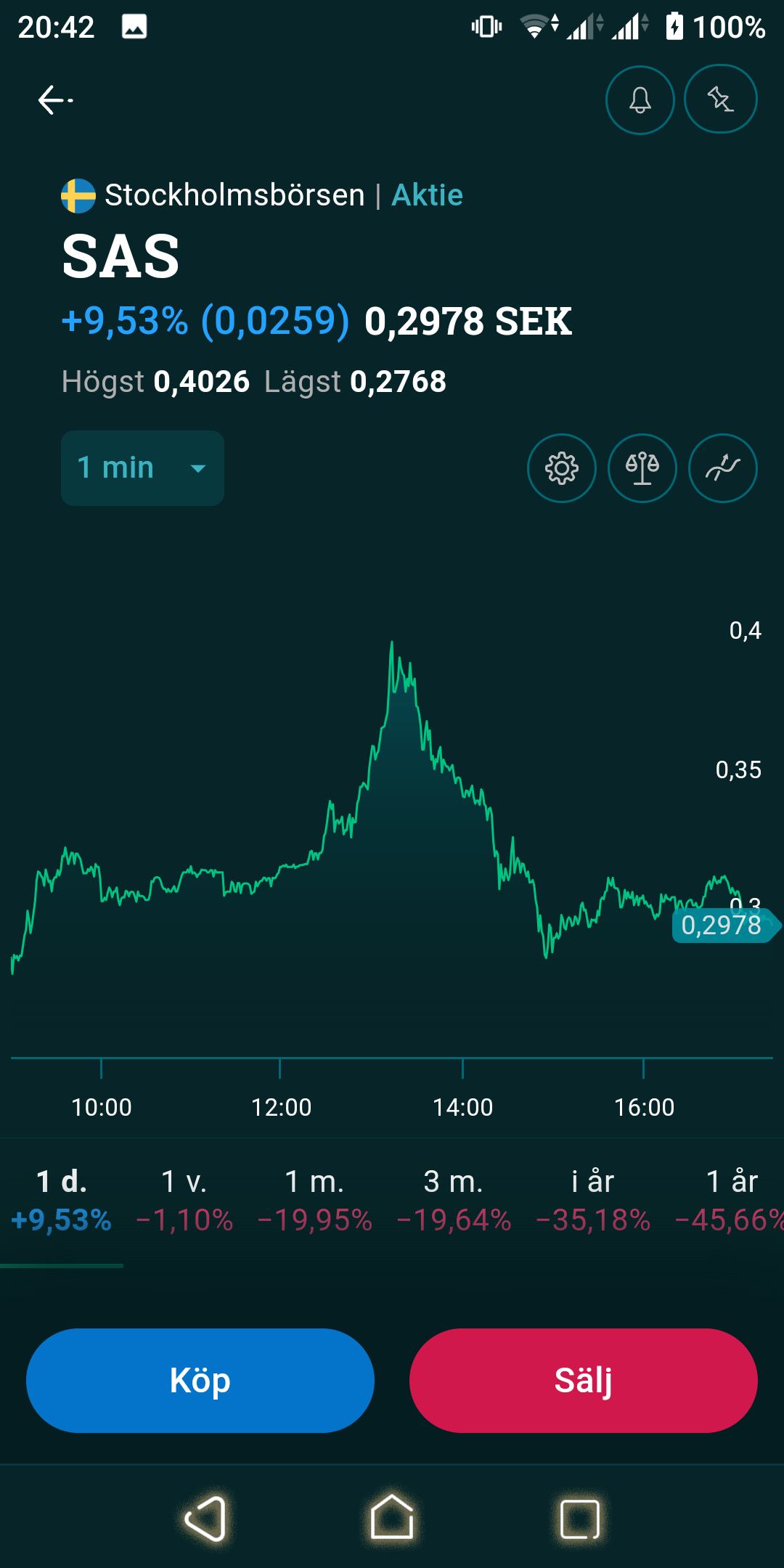 Aktien steg 9.53% idag tisdag. Fatta känslan för någon småsparare som YOLO in allt på konton i aktien, dom kände sig som en kung med +9% på en dag när börsen stängde.