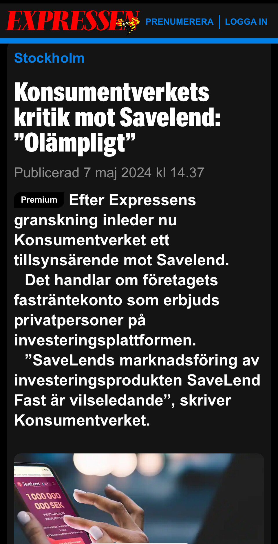 Det största problemet med Savelend är hur de kommunicerar, och anledningen till att jag avvecklar mitt innehav hos dem. Det näst största problemet är för alla som investerade före 100% återbetalbara konsumentkrediter som Evolina nämner, alternativt de som efter att de infördes inte (manuellt, själv i inställningarna) stängt av allt annat. De kan se > 50% av sina innehav fastna i inkasso utan att vare sig ge någon ränta, amortering eller ens bli en kreditförlust (=avdrag på deklarationen). De är bara helt låsta på obestämd tid, vilket i mitt fall exempelvis varit 6 år utan en krona, på ett lån som skulle vara återbetalt inom två år.