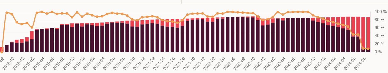 Nu sitter jag fast med det kvarvarande beloppet i några krediter av olika slag som står som försenade, några har varit det i ett par månader och andra i nästan ett år. Då går de inte att sälja. Går inte utläsa någonstans vad som pågår med krediterna eller vad man kan vänta sig när detta sker, vilket är ett stort minus med plattformen som helhet i mina ögon.