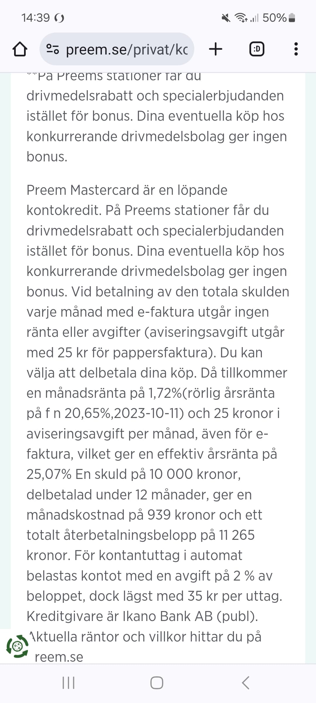 Edit: förtydligande - jag pratar om Preem privatkort, inte Preem mastercard.