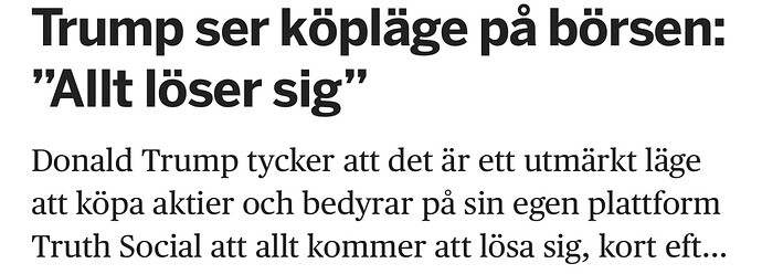 Trump måste få hela USAs näringsliv emot sig och kanske en riktigt ursinnig befolkning för att inse att det inte går att ha tullkrig mot större delen av världen.