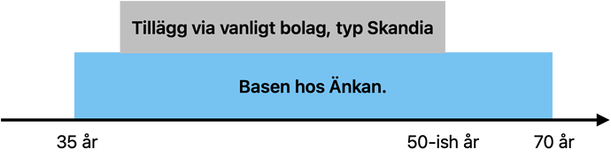 På det här sättet upplever jag att man får det bästa ur båda världar. Basen hos Änkan som löper över livet och Skandia som ett tillägg nu när barnen är små. Illustrerat som följer: