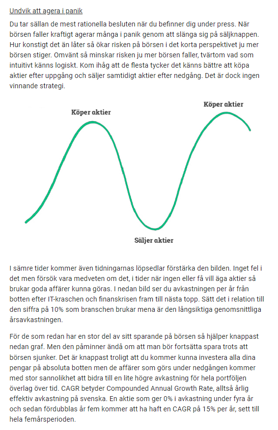 Nicklas Andersson på Avanza uttrycker sig på följande sätt i sin text om att undvika de vanligast misstagen på börsen.