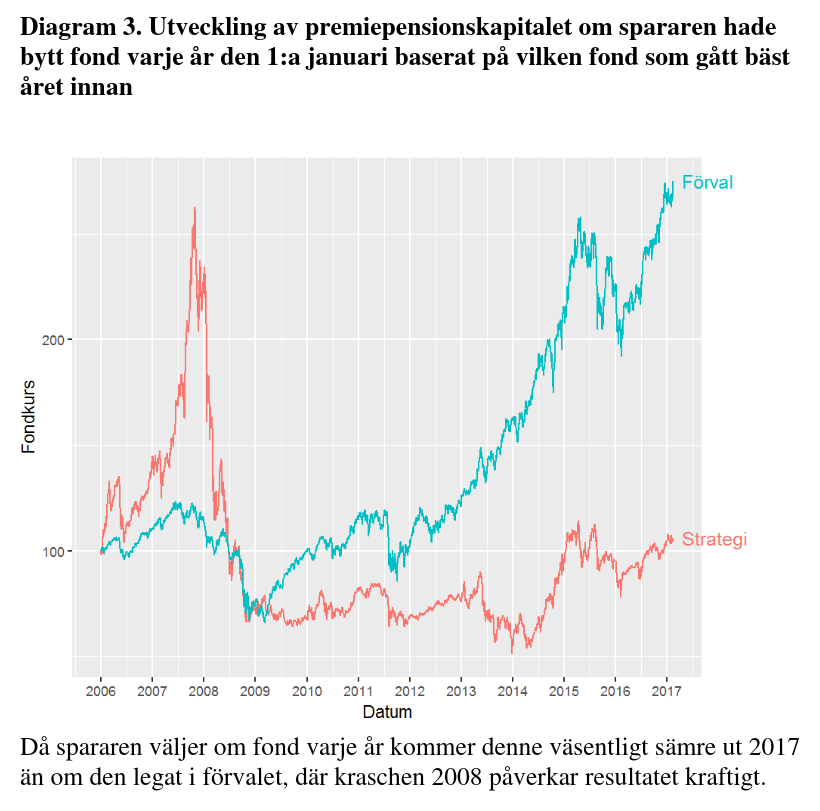 Utdrag ur Pensionsmyndighetens “Bör fondsparare utgå från tidigare års avkastning när de väljer fonder?”: