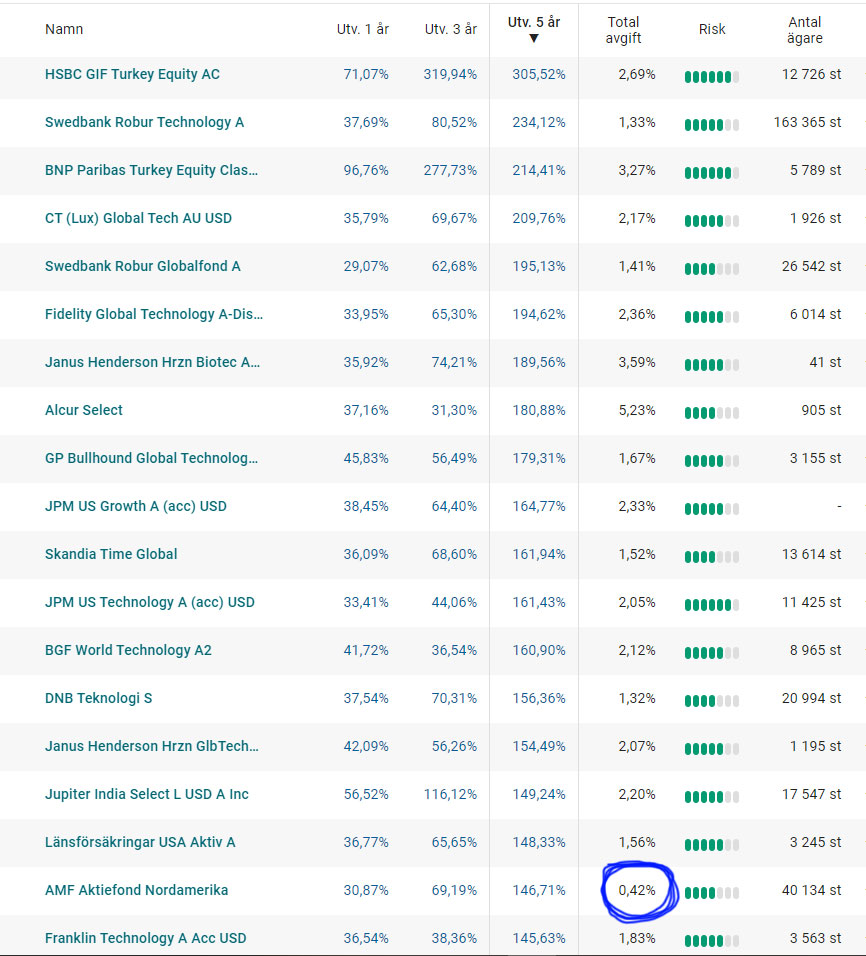 Hej! Avanzas topplista sorterat på 5 år. Säkert har många gjort denna sortering