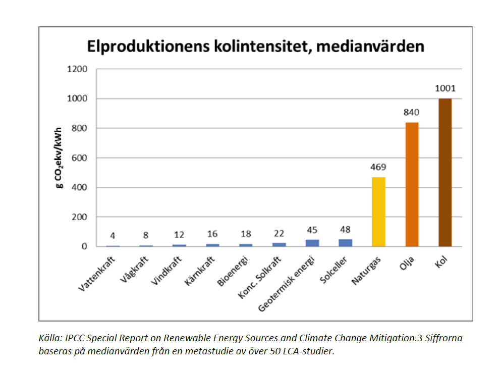 Det är ju en extremt stor skillnad på en solcell och en dieselbil. Även om man bara bryr sig om kolintensitet, så är solceller 10x bättre än naturgas och mer än 20x bättre än olja och kol, vilka är de stora bovarna. Alla de blå staplarna kan ju bara klassas som bra.