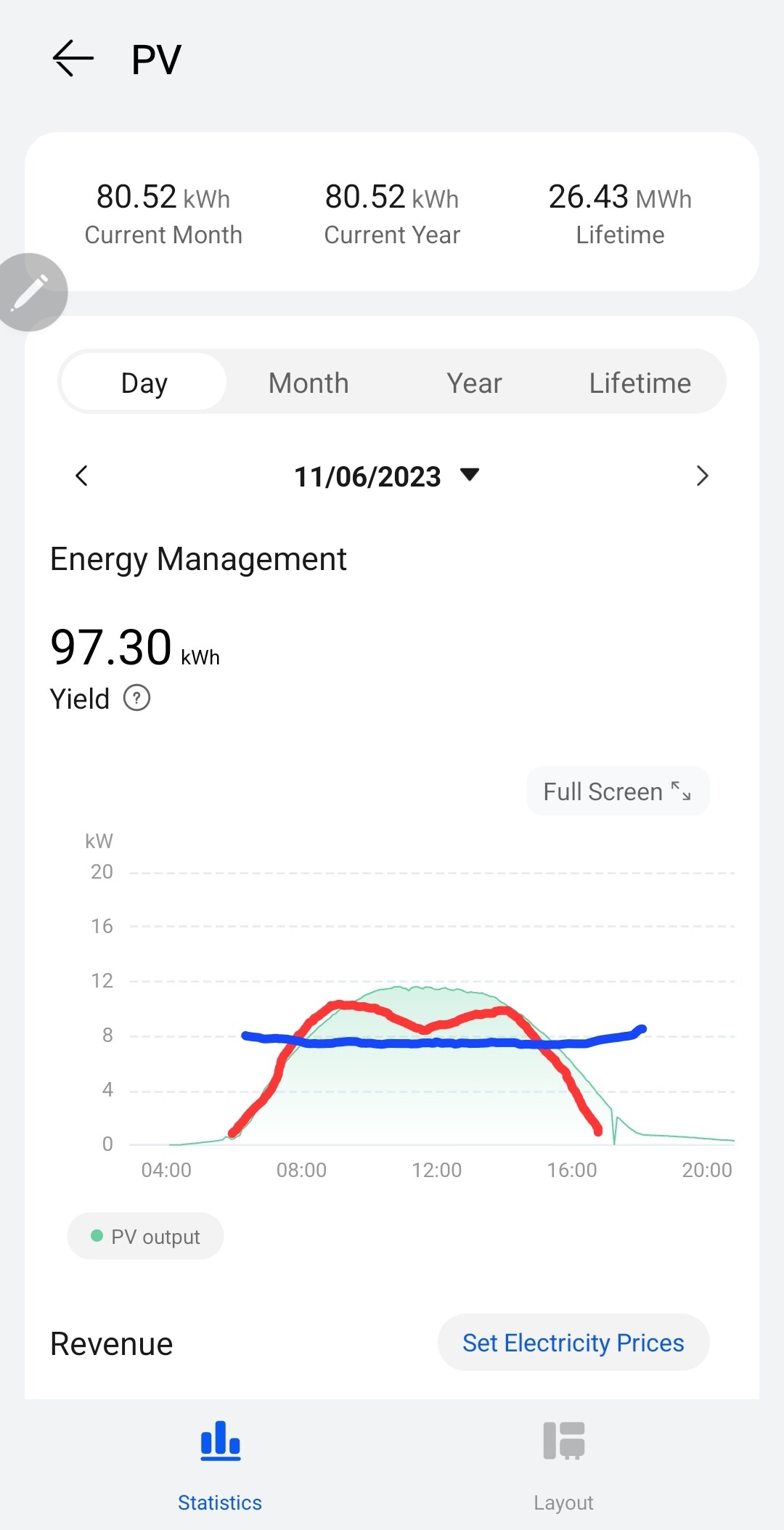 Speicellt som i mitt fall där panelerna är rakt i öster och väster, det blir aldrig den där megatoppen i juni mitt på dagen utan mer “flatten the curve” och jag fångar morgon och kvälls/eftermiddagssolen fint med timpriserna.