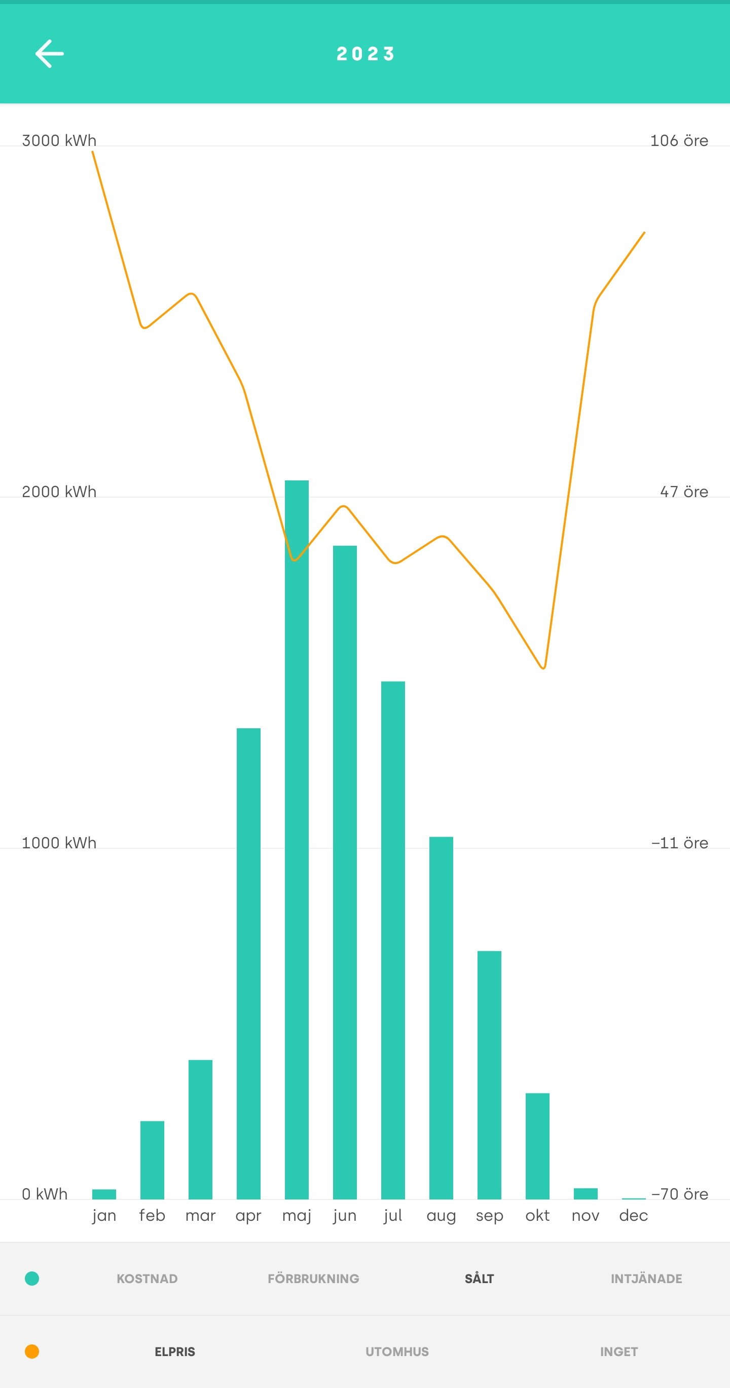 Sålt ca 9500kWh för ca 4500kr totalt för 2023.