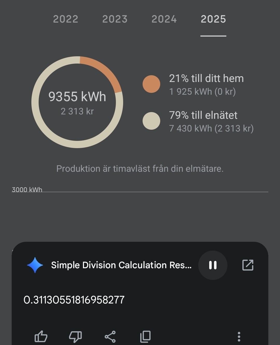 Det står ju ”2313 kr till elnätet”, eller menar du att du gått 31 öre med vinst?