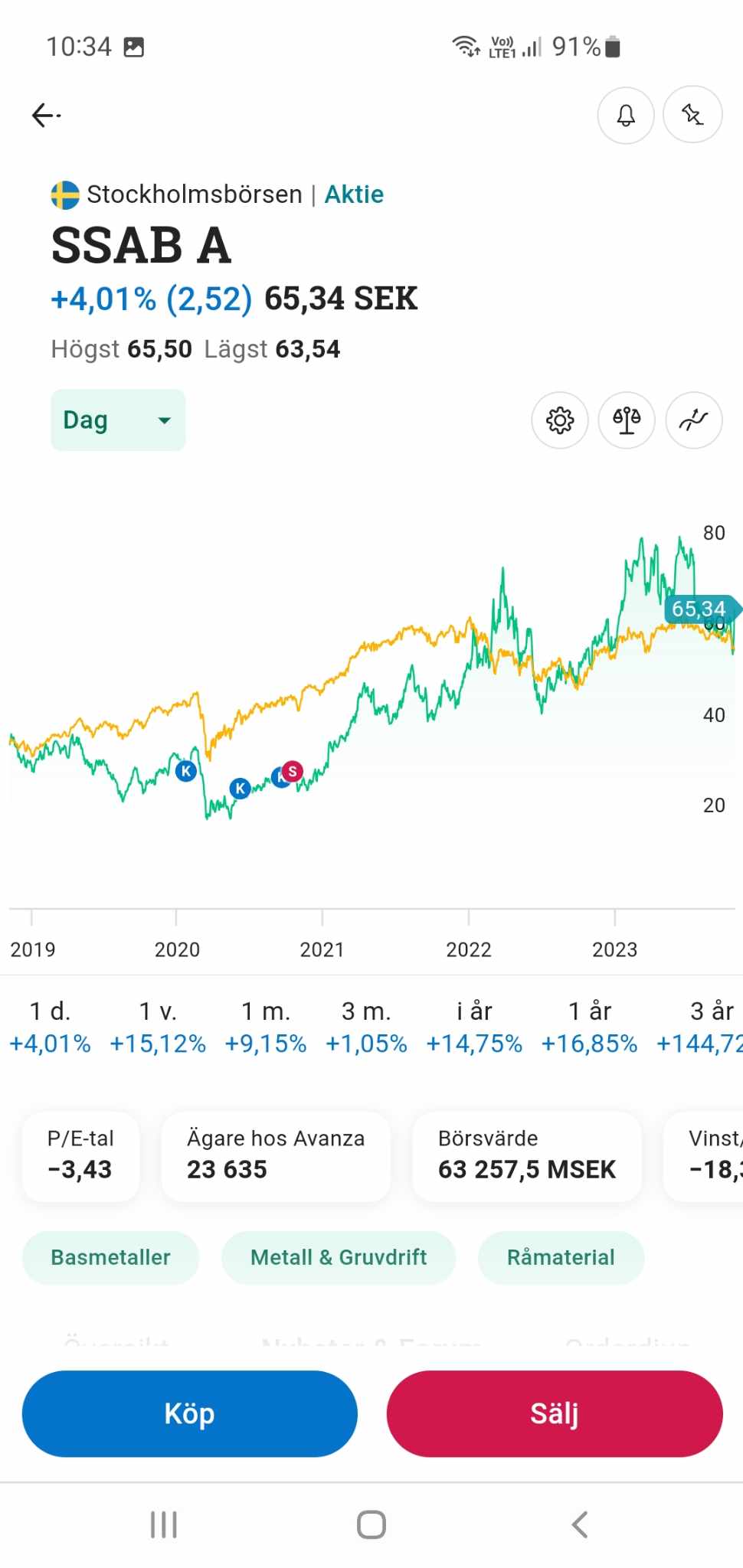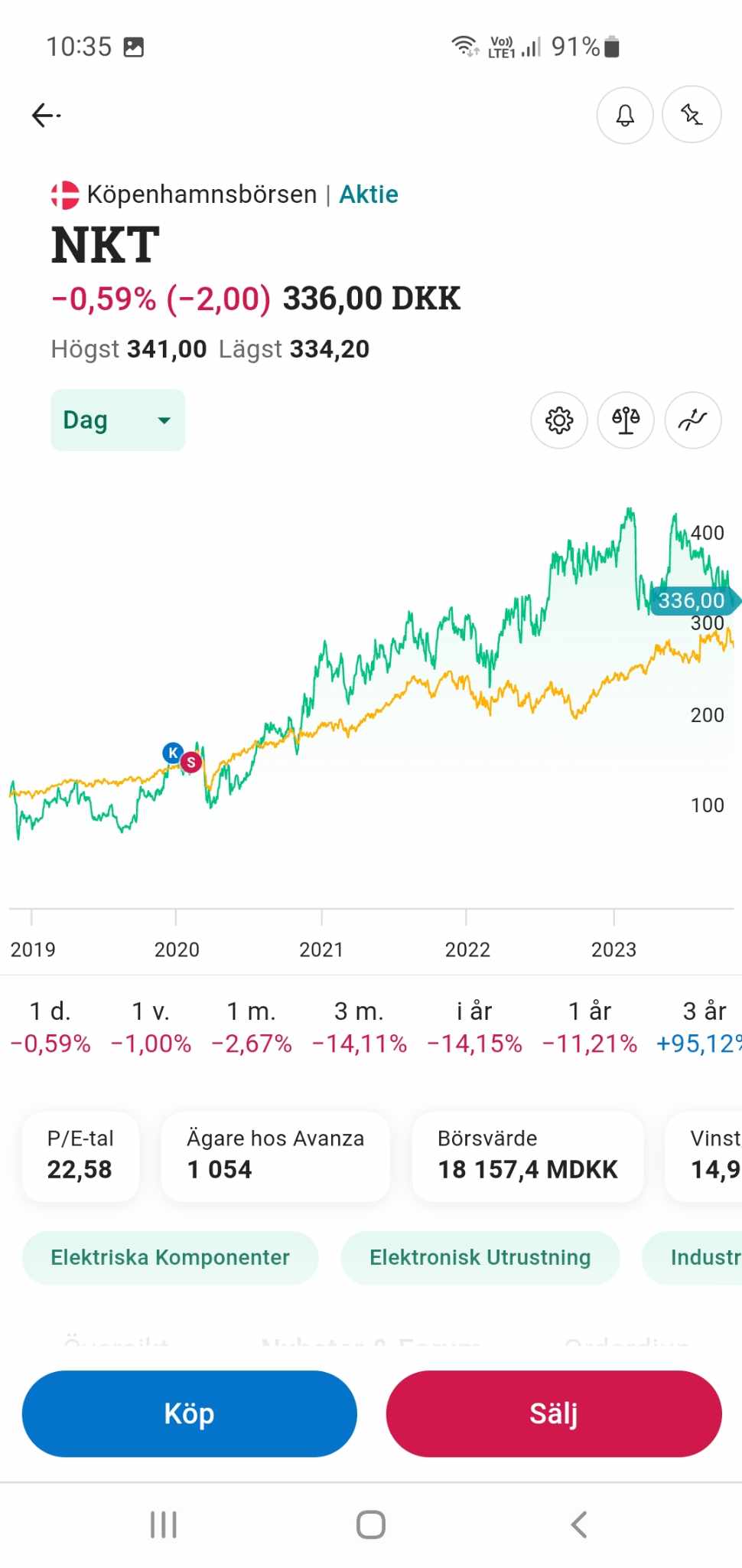 Generellt går det bra, jag har 90% av mitt sparande i långsiktiga företag, olika branscher. 10 % har jag som likvider som jag köper högrisk aktier/företag eller daytradar lite med. Mest för det är roligt och spännande, går väl sisådär med det. Går lite plus men inte mer än så. Kräver mycket tid om du ska daytrada! De 10% lägger jag främst i högrisk bolag i X månader sedan säljer jag av och letar nytt. I mån av tid! Krävs en del tid att hitta guldkornet. Jag gått på några minor också, gjort min förlust affärer genom åren också. Inte bara vinster hos mig iallafall. ![]()