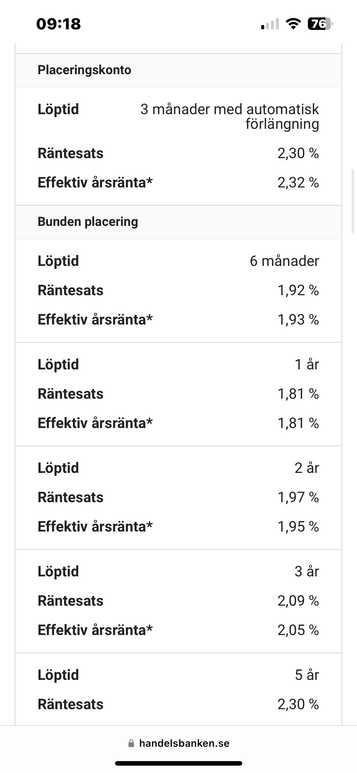 Bifogar även en bild från Handelsbankens hemsida kring (vad jag tror är) sparkonto med ränta? Tack på förhand!